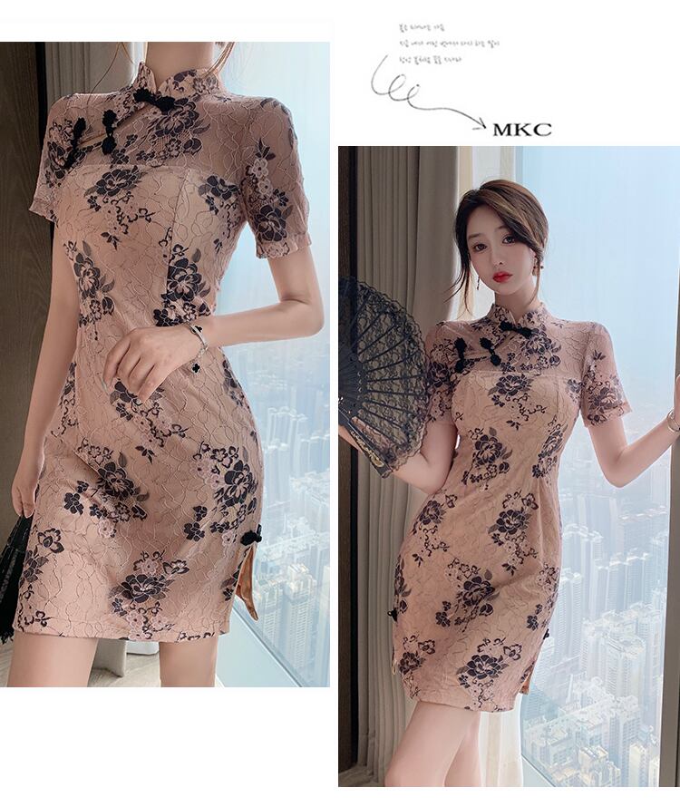 2021年秋新しい女性の若い改良版気質セクシーなショートパッケージヒップレースチャイナドレス micat17202710594