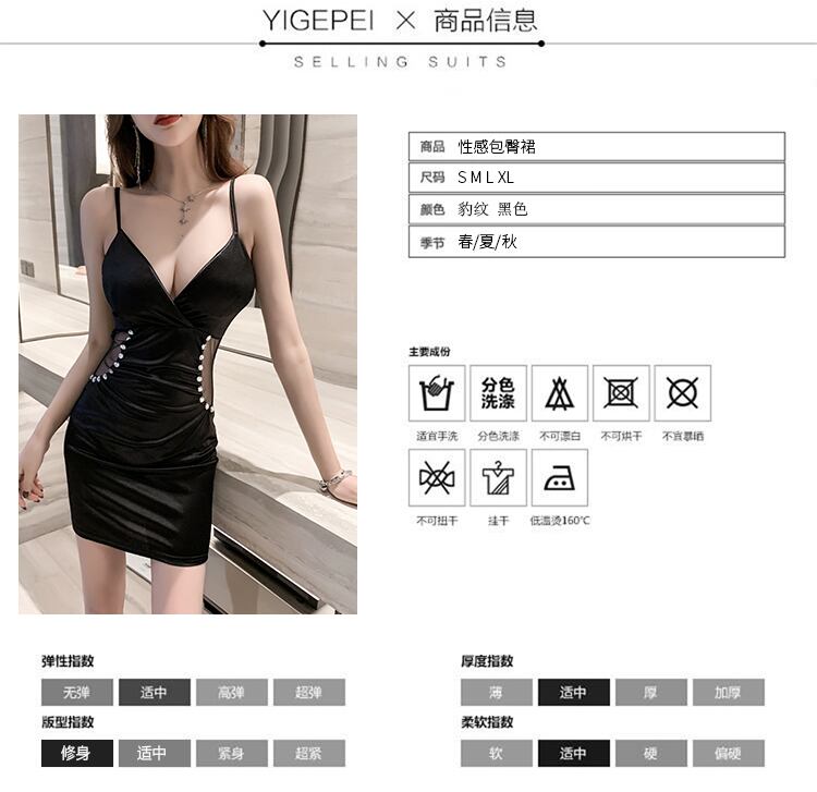 ナイトクラブの女性の夜の作業服セクシーな低深Vネックメッシュステッチショートヒョウ柄サスペンダードレス micat60443591335