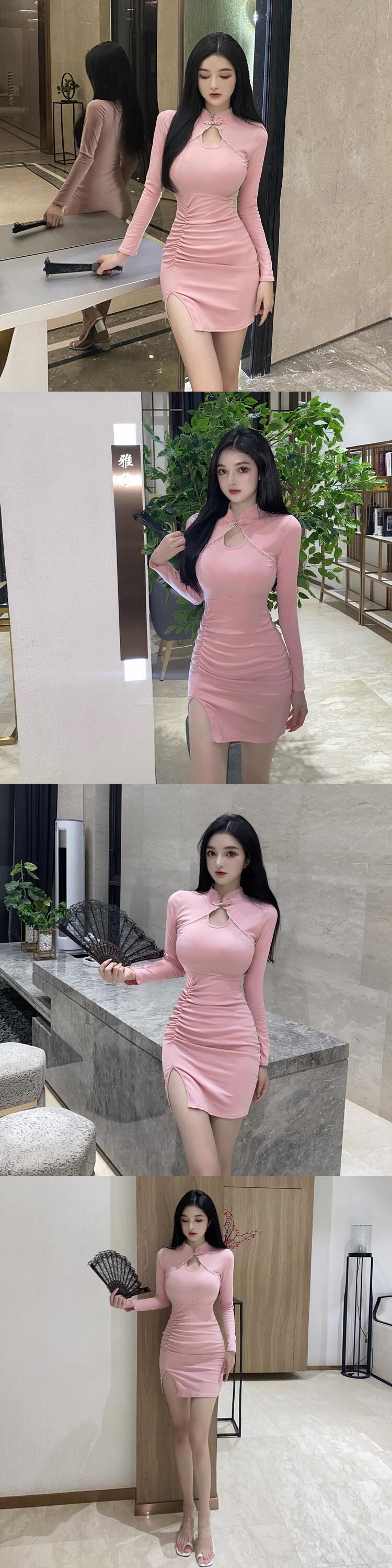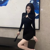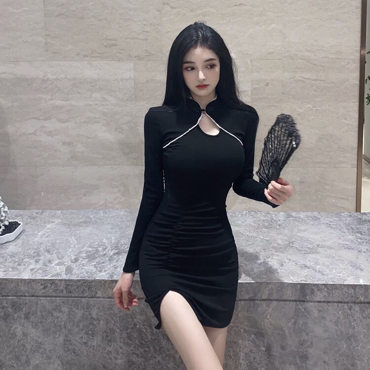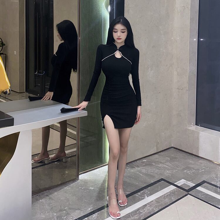 改良されたチャイナドレス2021新しい秋と冬のウォータードロップカラー若いセクシーなショートバッグヒップスリットドレス micat14951570192