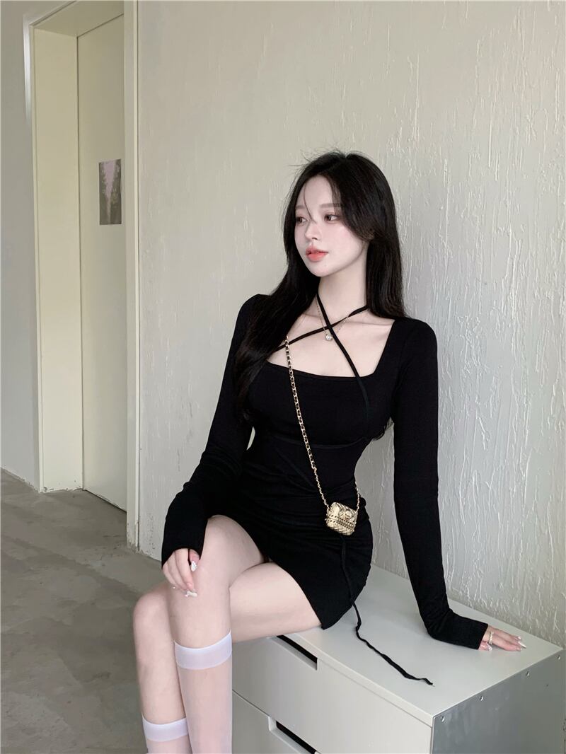2021年秋新しい女性の純粋な欲望スタイルセクシーなスクエアカラーストラップハンギングネックバッグヒップボトミングドレス micat13712301760