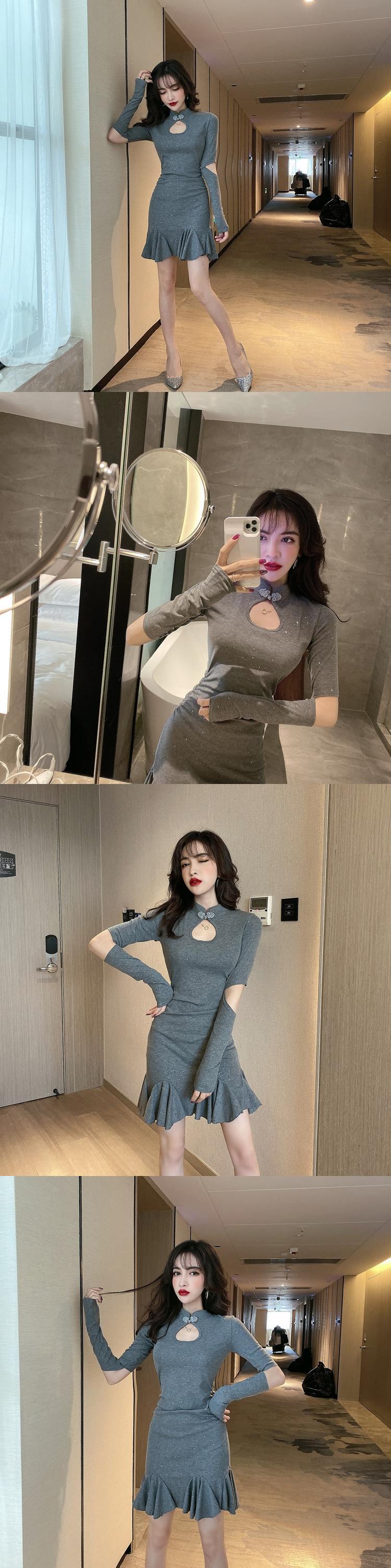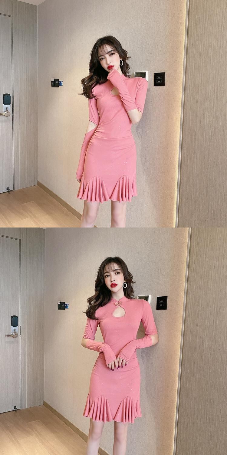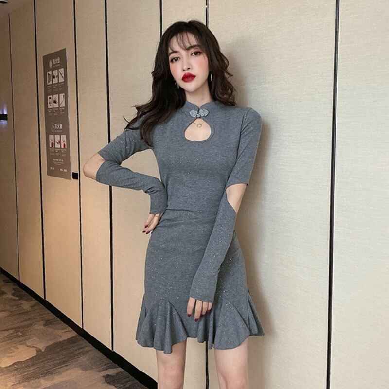 2021年初秋新しい女性のインターネット有名人アンカー輝く若い長袖フィッシュテール修正チャイナドレス micat90261025823