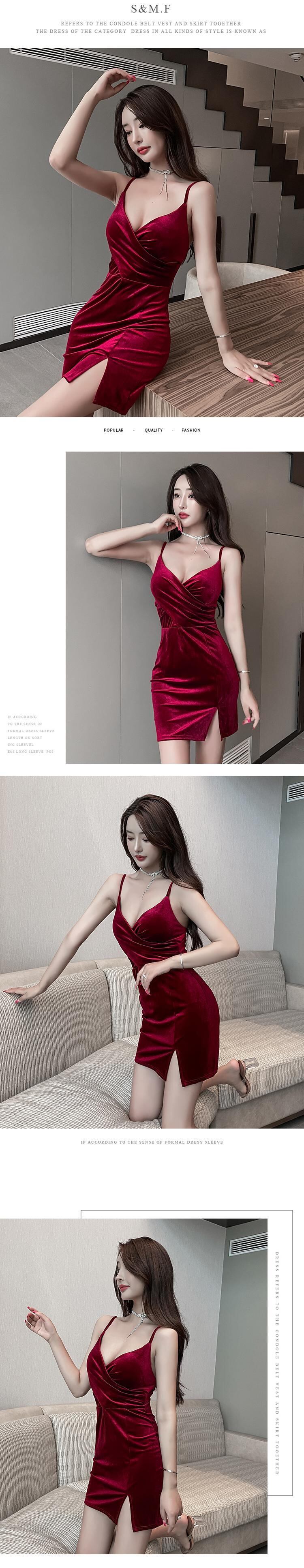 ナイトクラブの女性の夜の作業服セクシーなローカットディープVネックゴールドベルベットスリムスリミングバッグヒップサスペンダードレス micat23344250523