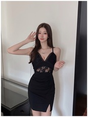 ナイトクラブレディースナイトクラブナイトフィールド作業服セクシーなローカットディープVネックレースステッチスリムサスペンダードレス micat58941183541
