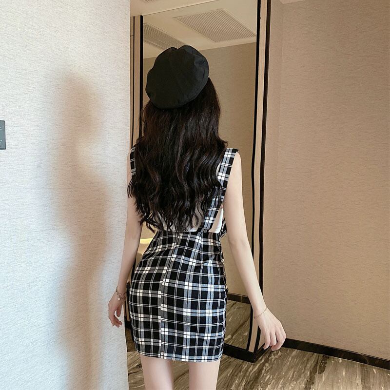 2021年サマースーツレディースセクシーショートトップTシャツ+ヒップバッグショートチェック柄スカート micat15299397597