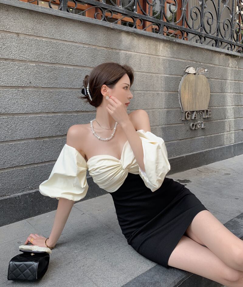 イブニングドレスの夜の女性の宴会の気質フレンチセクシーな深いVネックのランタンスリーブショートバッグヒップチューブトップドレス micat29527473419