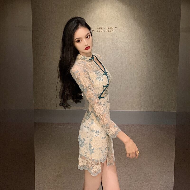 2021年秋新しい女性の若いアンカーセクシーな中空長袖改良チャイナドレスレースドレス micat11537263138