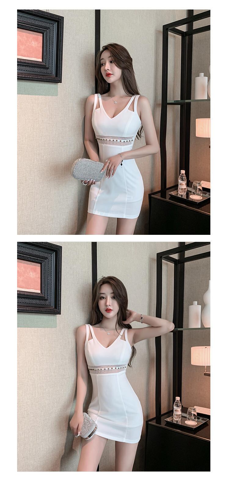 夜の作業服メッシュステッチサスペンダースカートeign気質セクシーなローカットディープVネックタイトフィットヒップドレス micat7450703710