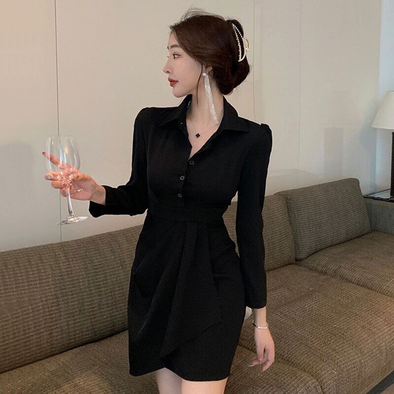 成熟したロイヤルシスター婦人服初秋eign気質女神ファンシャツスカートデザインセンスラペルウエストスリムドレス micat46182295548