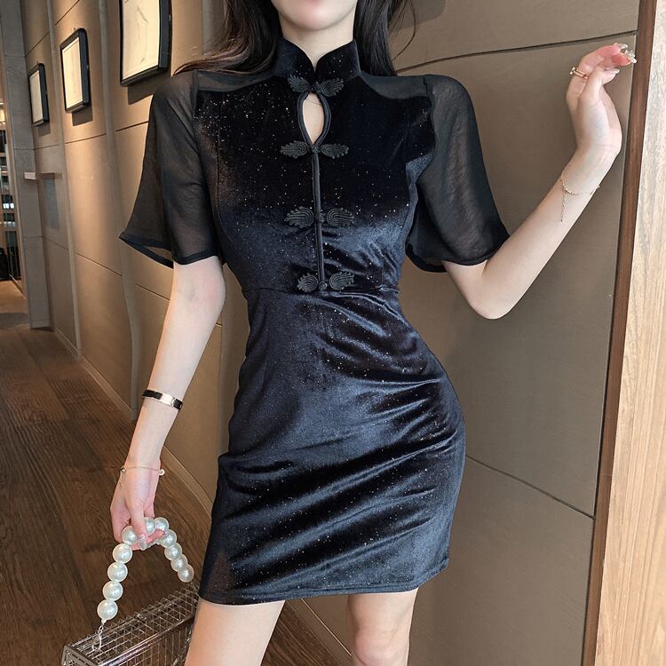 生放送服女性アンカー服ポジェニックハイエンドチャイナスタイル若いゴールドベルベット改良チャイナドレス micat47792640649