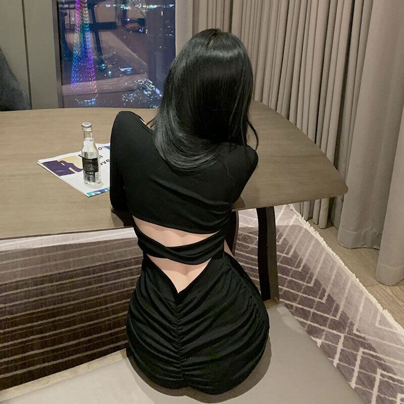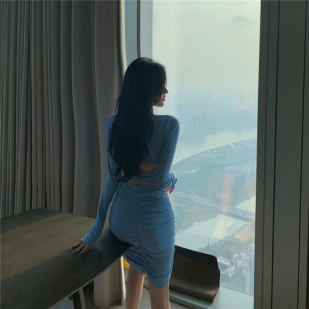 2021年秋新しい女性の慎重なマシンデザインセンスニッチセクシーな中空バックレスボトミングドレス micat96259185029