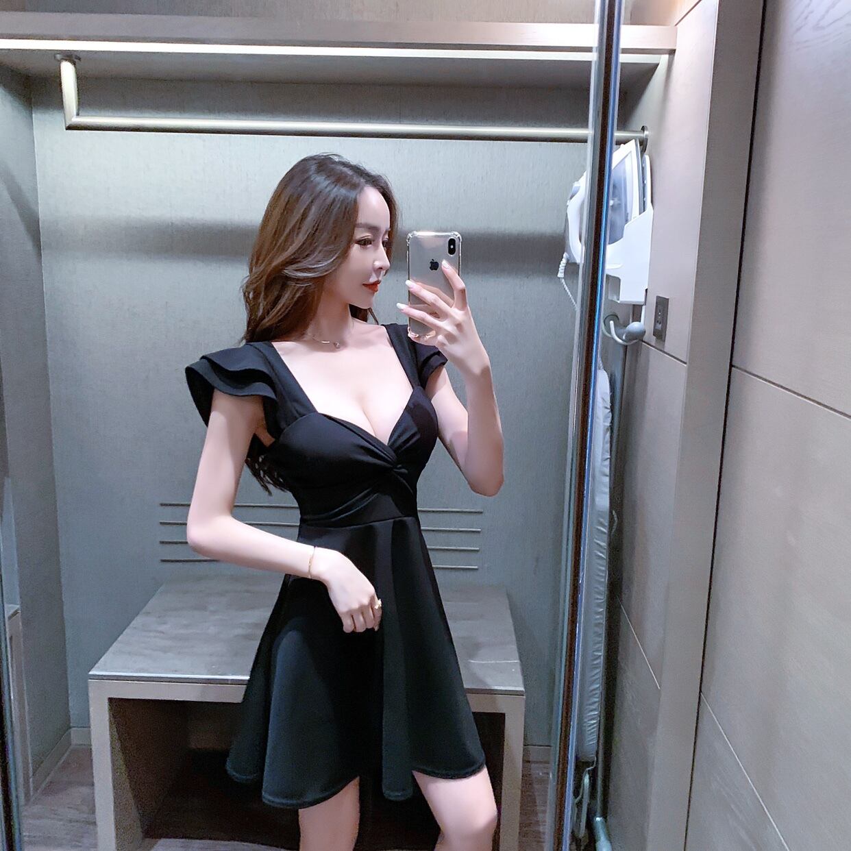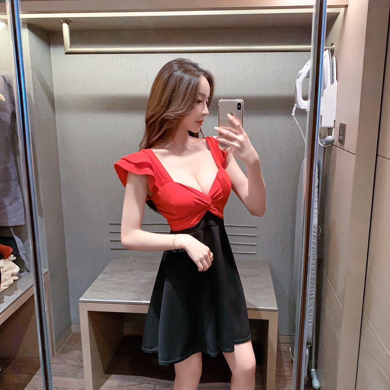 夜の女性の足浴技術者のオーバーオールセクシーなローカットVネックFeifei袖ウエストと薄い偽のツーピースドレス micat2938874929