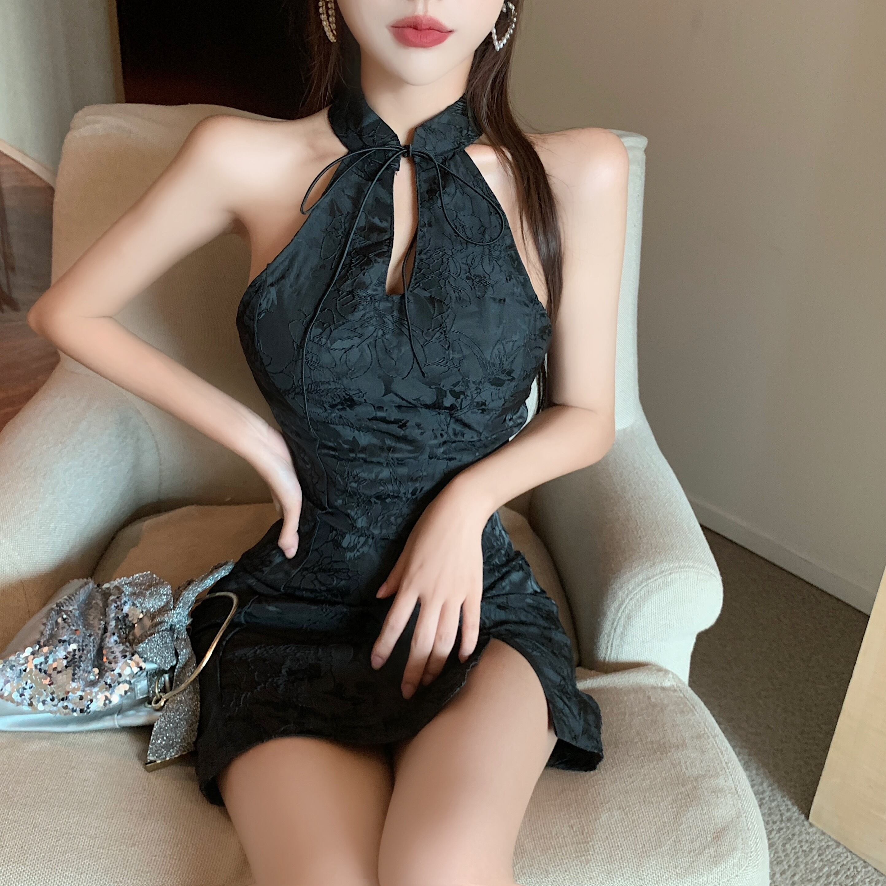 ライブ服女性アンカーポジェニックシニア若い中国風セクシーなオフショルダーハンギングネック改良チャイナドレス micat8637664682
