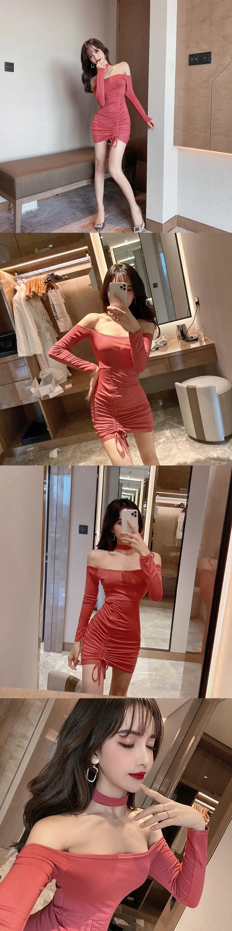 ネットレッドアンカー服女性服セクシーワンショルダー長袖ボトミングタイトフィットヒップドレス micat40571569056