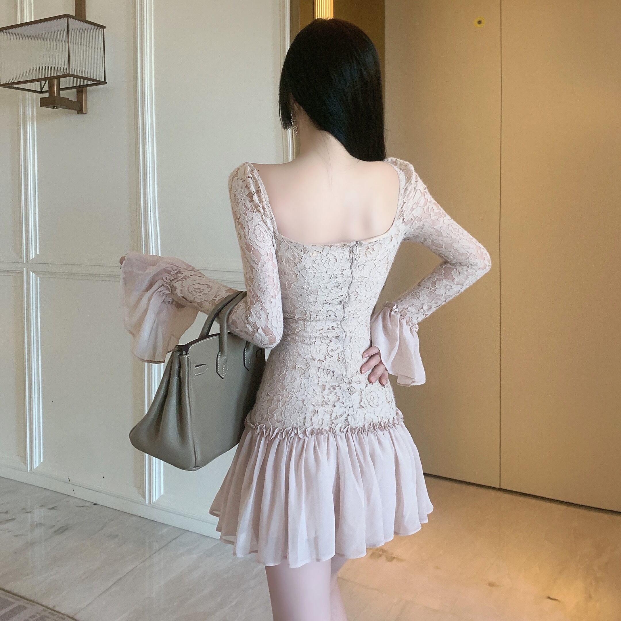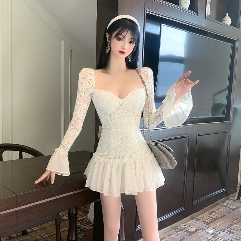 夜のフェアストア衣装妖精ドレス気質セクシーなローカットディープVネックレースバッグヒップ長袖チューブトップドレス micat47855963002