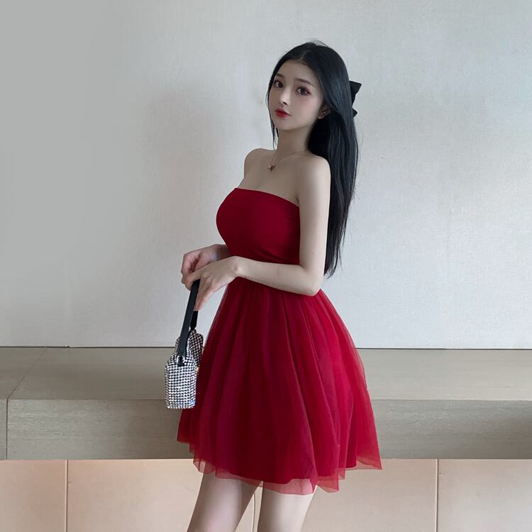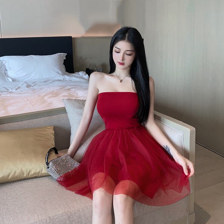 スカート女性大人のディナーパーティー誕生日スカート短い段落スーパーフェアリーメッシュセクシーなチューブトップふくらんでいるドレス micat705934752