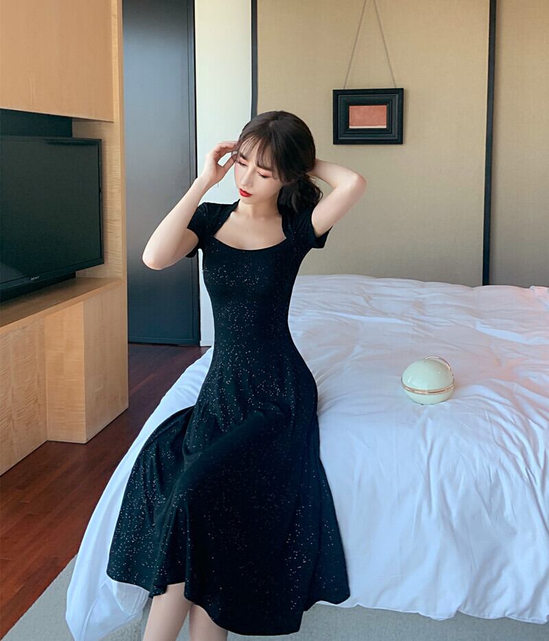 フランスのレトロなイブニングドレススカート2021シンプルで寛大な光沢のあるシルクスリミングミドル丈ドレス micat43631302493