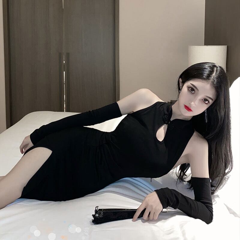 ライブ服女性アンカー服ポジェニックシニアレッドクリスマスセクシーな長袖オフショルダー改良チャイナドレス micat83856189941