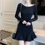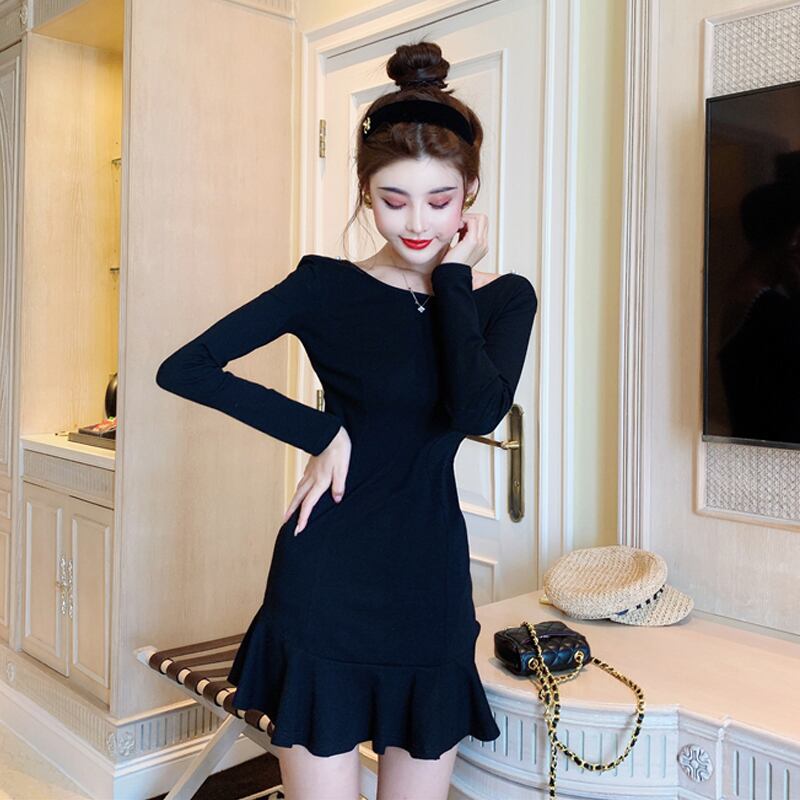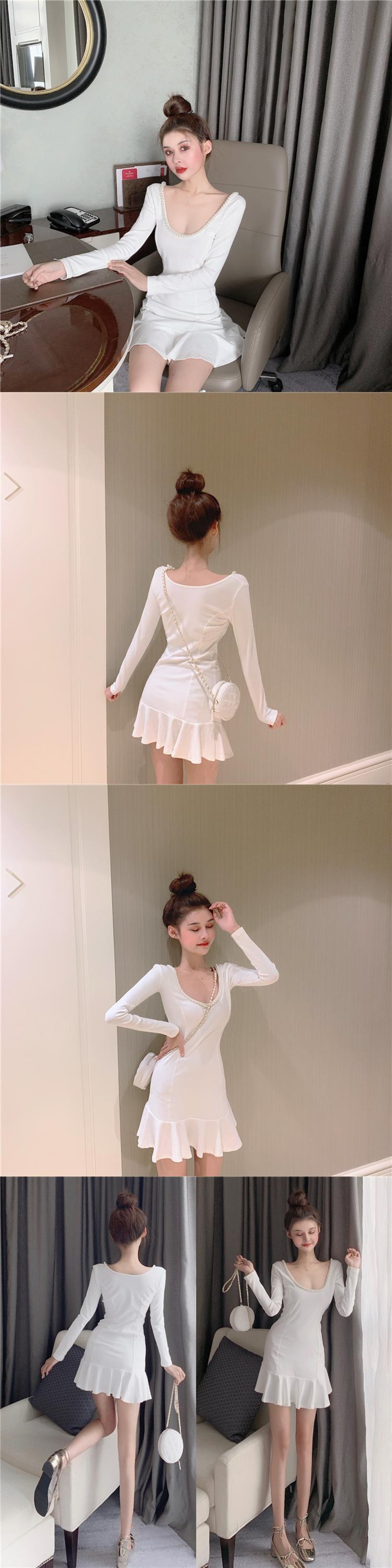 2021年秋新しい女性有名人の気質セクシーなローカットUネックフロントとリアの明るいシルクバッグヒップフィッシュテールドレス micat79921907264