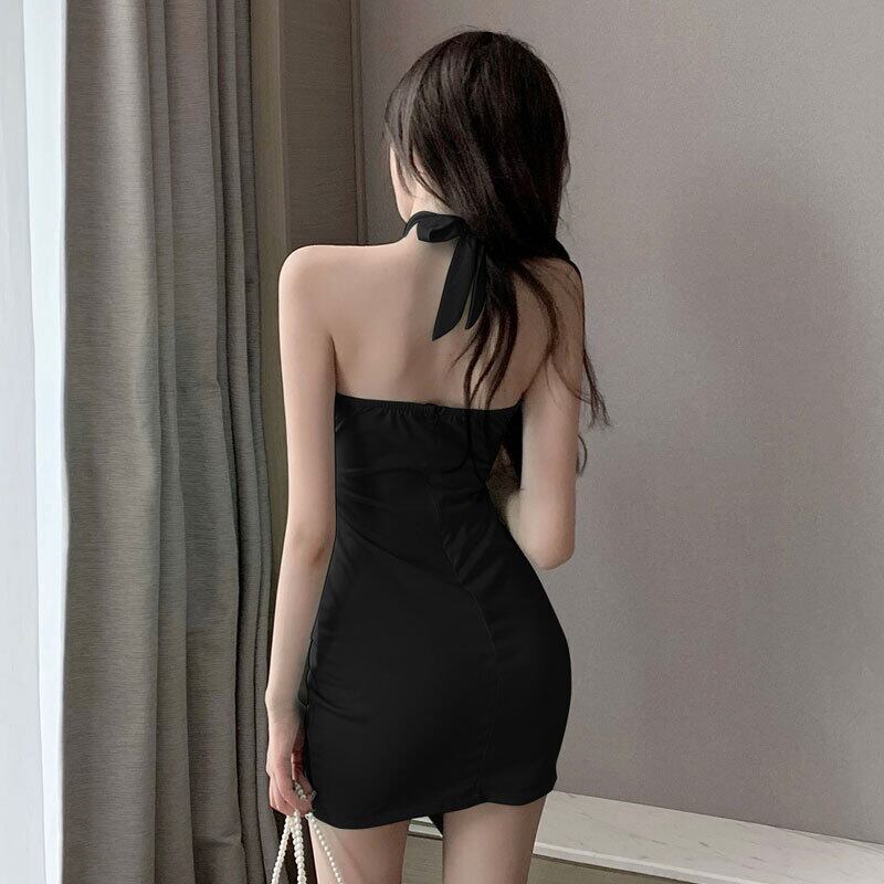 ナイトクラブの女性のナイトクラブの夜の作業服セクシーなローカットVネックの背中の開いたストラップは薄いホルタードレスを示しています micat5717594923