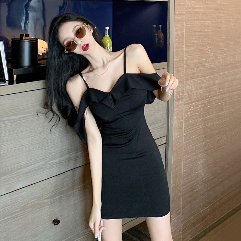 ナイトクラブレディースショートドレススモールブラックドレスクリックドレススモールドレスセクシーアウターウェアサスペンダードレス micat5464084417