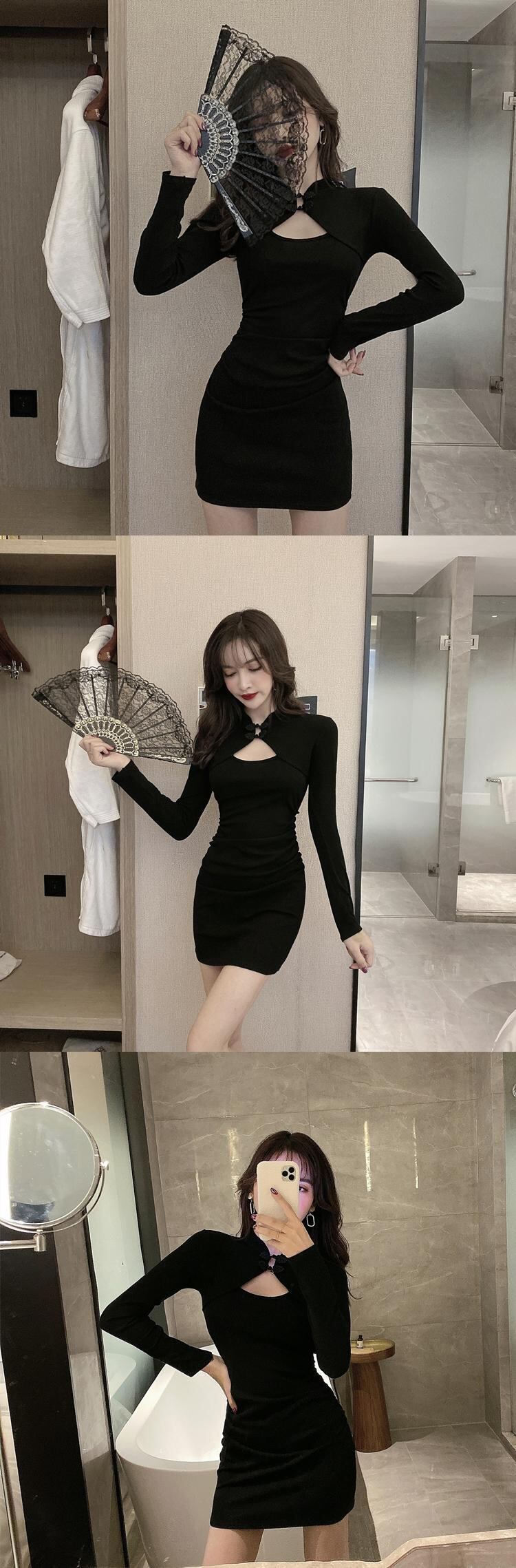 チャイナスタイルファッション若い秋のセクシーな長袖スリムショートパッケージヒップチャイナドレス改良版ドレス micat33514560498