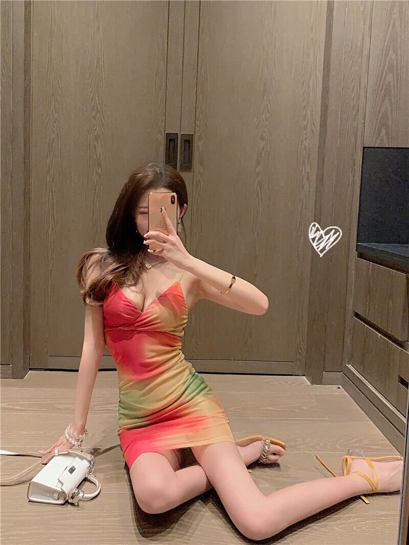 ナイトバーディスコレインボーグラデーションナイトクラブセクシーなローカットディープVネックタイトバッグヒップサスペンダードレス micat74917359164