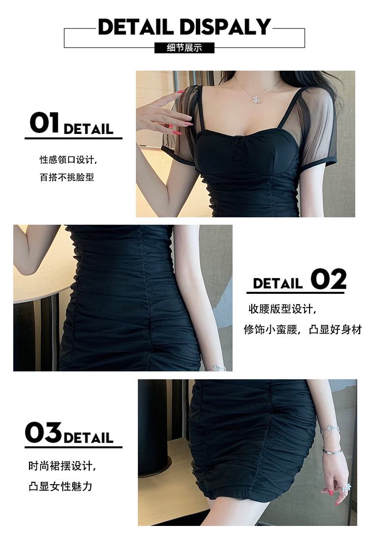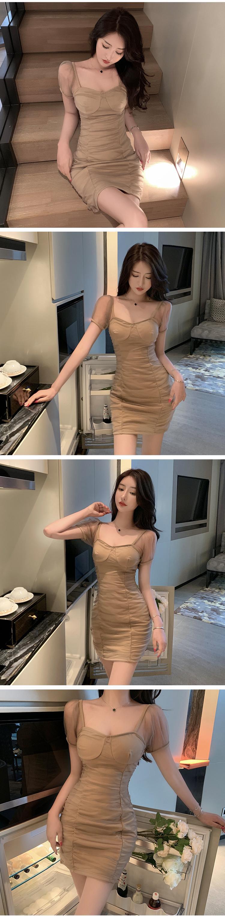 ナイトクラブの女性の非常に妖精の夏のドレスアンカーセクシーなスクエアネックメッシュパフスリーブスリムヒップドレス micat30248479318
