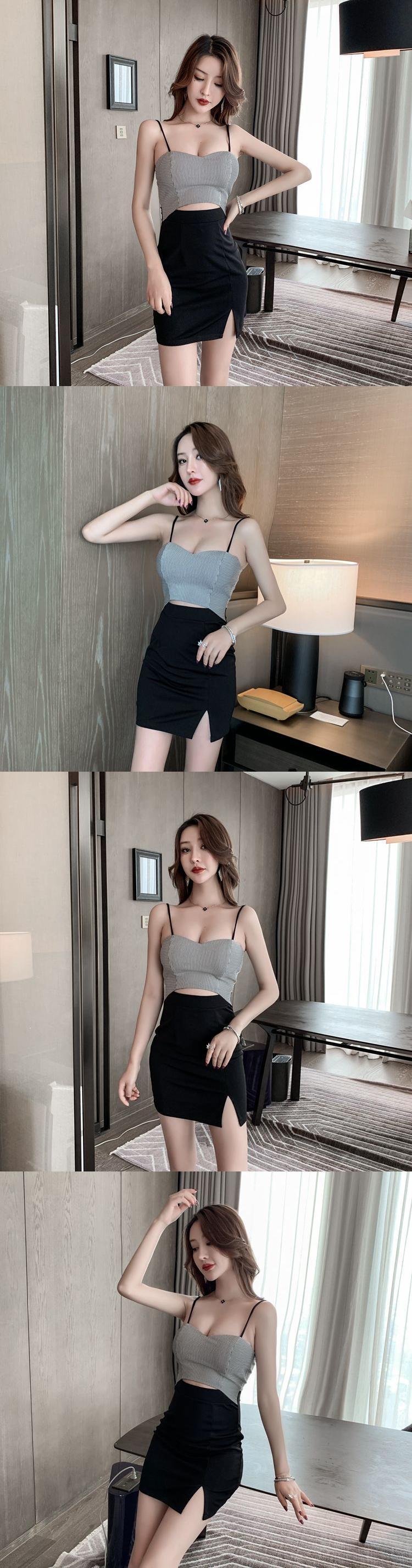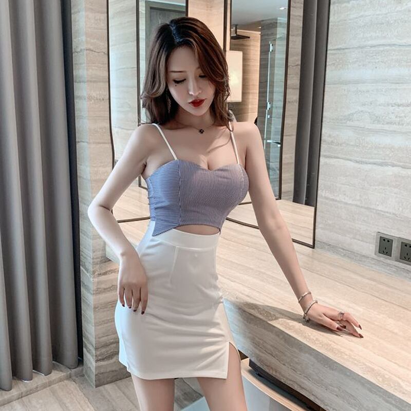 夜の作業服女性の気質セクシーなくり抜いたスリムバッグヒップスプリットショートバッグヒップチューブトップサスペンダードレス micat1450990977