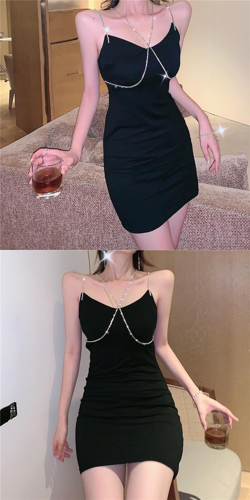 ナイトクラブドレスナイトレディーススモールドレスショート気質セクシーラインストーンチェーンスリムバッグヒップサスペンダースカート micat48082545623