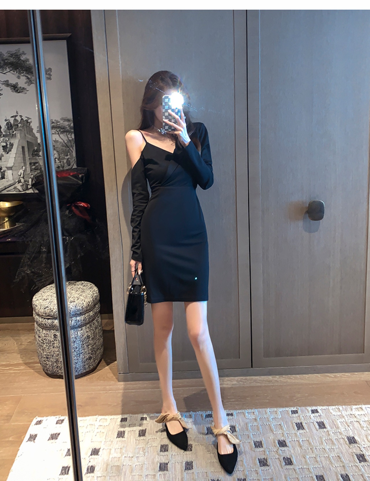 2022年春の新しい女性らしさの女神ファンセクシーなVネックワンショルダーオフショルダーバッグヒップ長袖サスペンダードレス micat9158337003