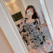 インナードレスレディース秋冬フレンチレトロスクエアカラーカラー気質セクシーな長袖タイトフィットヒップボトミングスカート micat5748371180