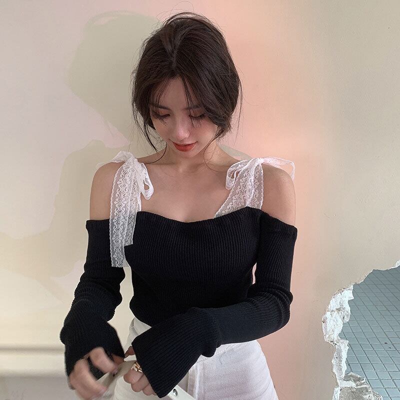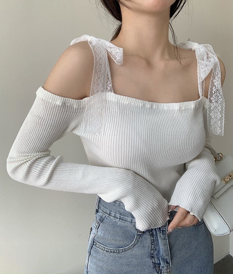 秋の婦人服2021年新作ピュアラストセクシーワンワードネックレースショルダーストラップニットオフショルダートップ micat1860160715