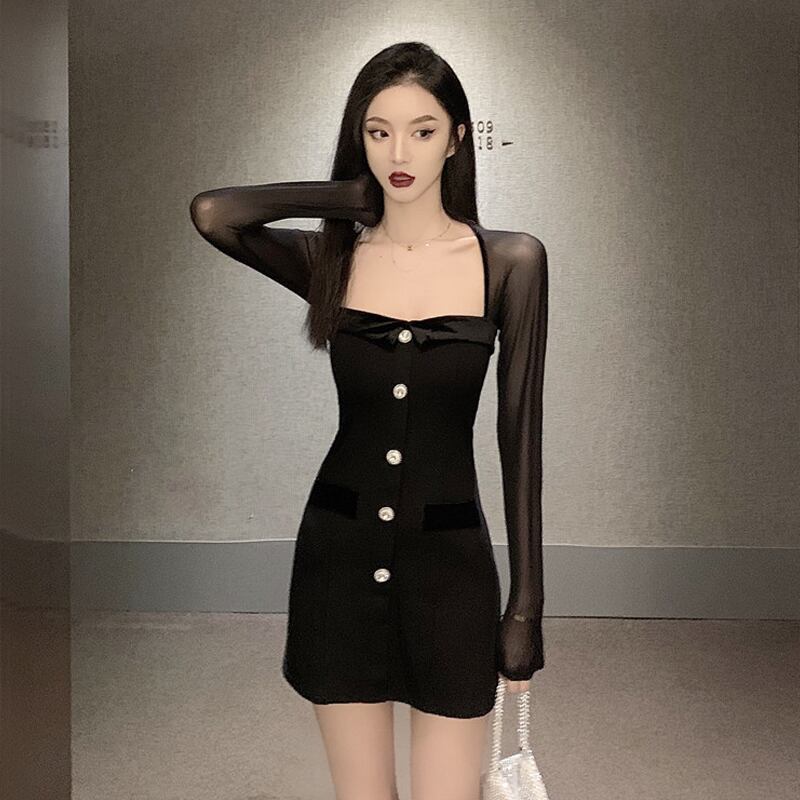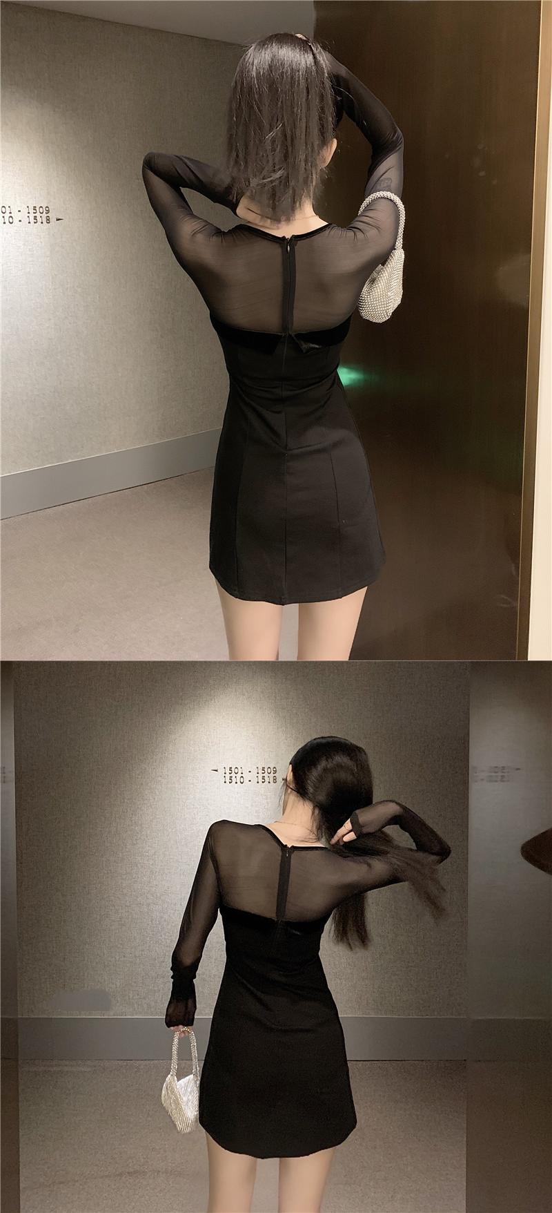 ナイトクラブドレスバーディスコリトルブラックドレス気質セクシーメッシュステッチスリムバッグヒップ長袖チューブトップドレス micat64323317695