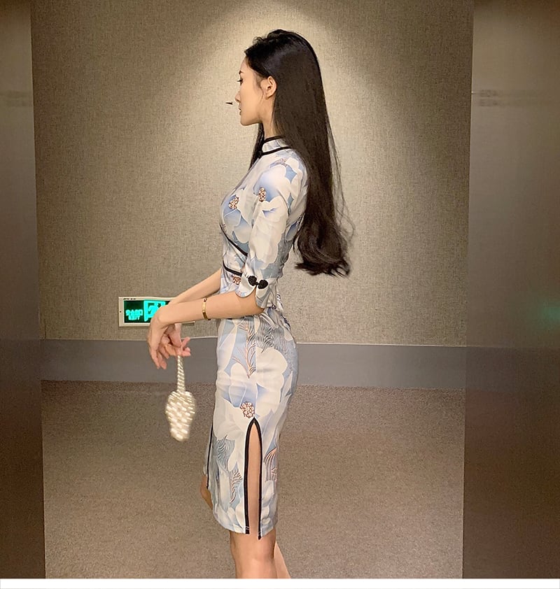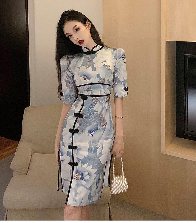 フランスのチャイナドレスヤングスタイル2021新しい中国スタイルの改良版デイリーウェアラブル5点スリーブドレス micat1701446349