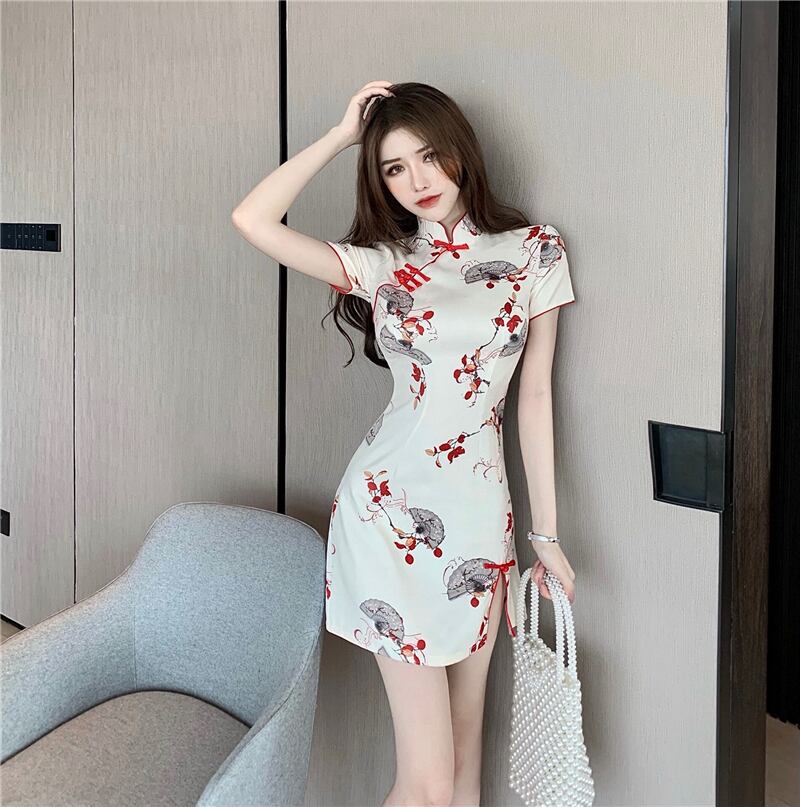 ネット赤いアンカー服若い中国風プリントセクシースプリットショートチャイナドレス改良版ドレス micat1096851777
