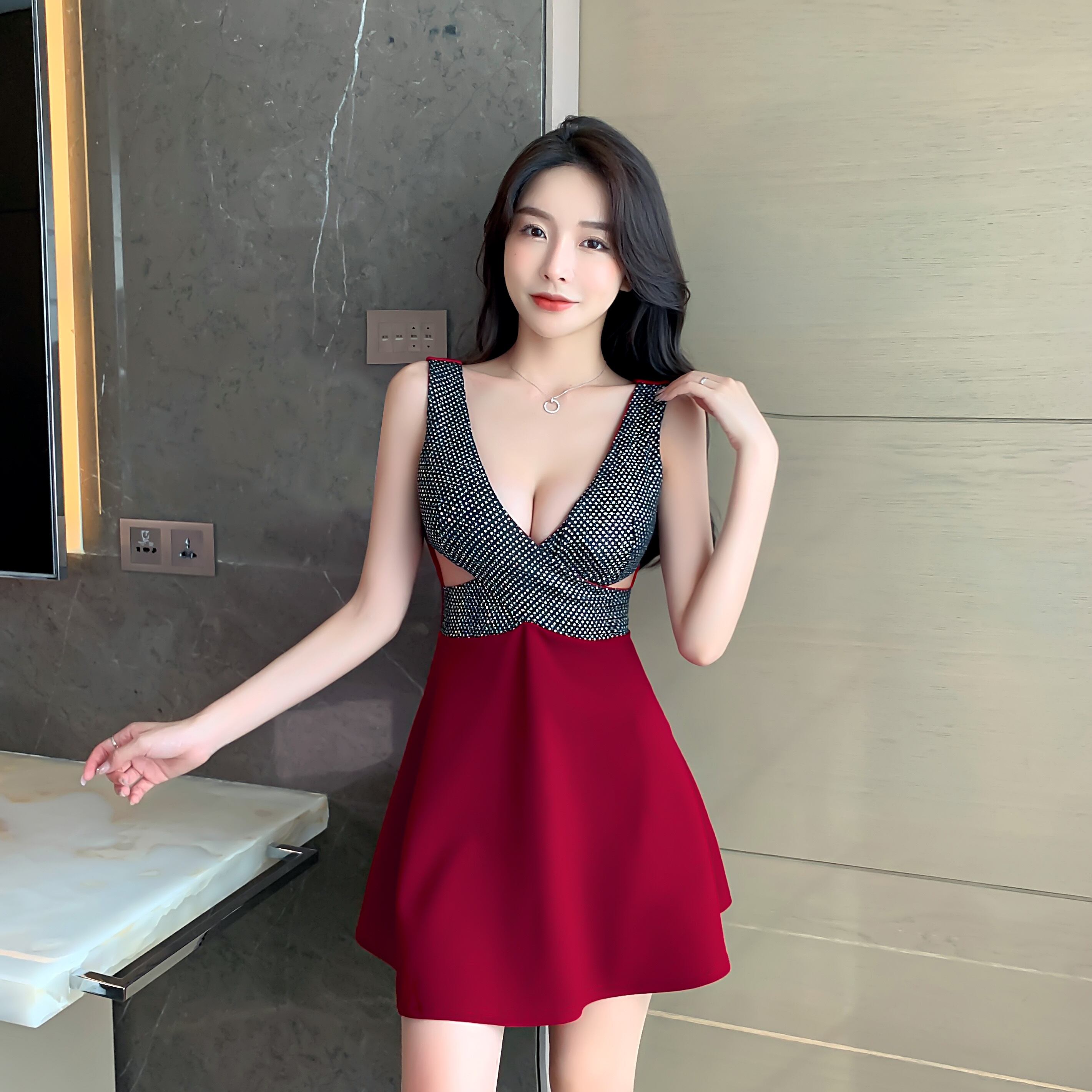 ナイトクラブの女性の作業服セクシーな作業服ローカットVネック気質痩身カバー腹ノースリーブドレス micat28763464628