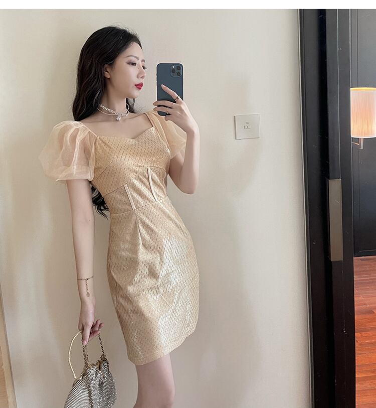 軽くて贅沢な小さなドレス高品質の毎日のパーティー光沢のあるスーパーフェアリーフレンチスクエアネックパフスリーブセクシーなドレス micat33060683543