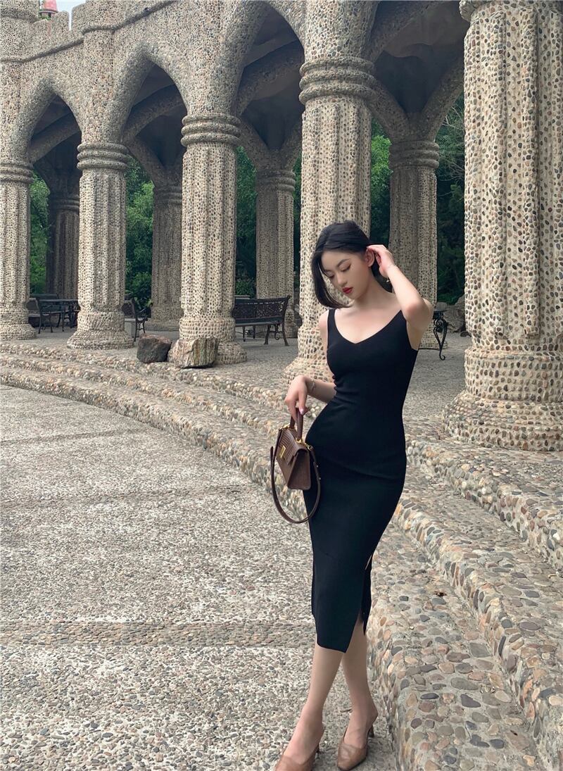 2022年人気の婦人服新しい冷風セクシーなローVネックオープンバック美しいバックミドル丈サスペンダードレス micat93888794884