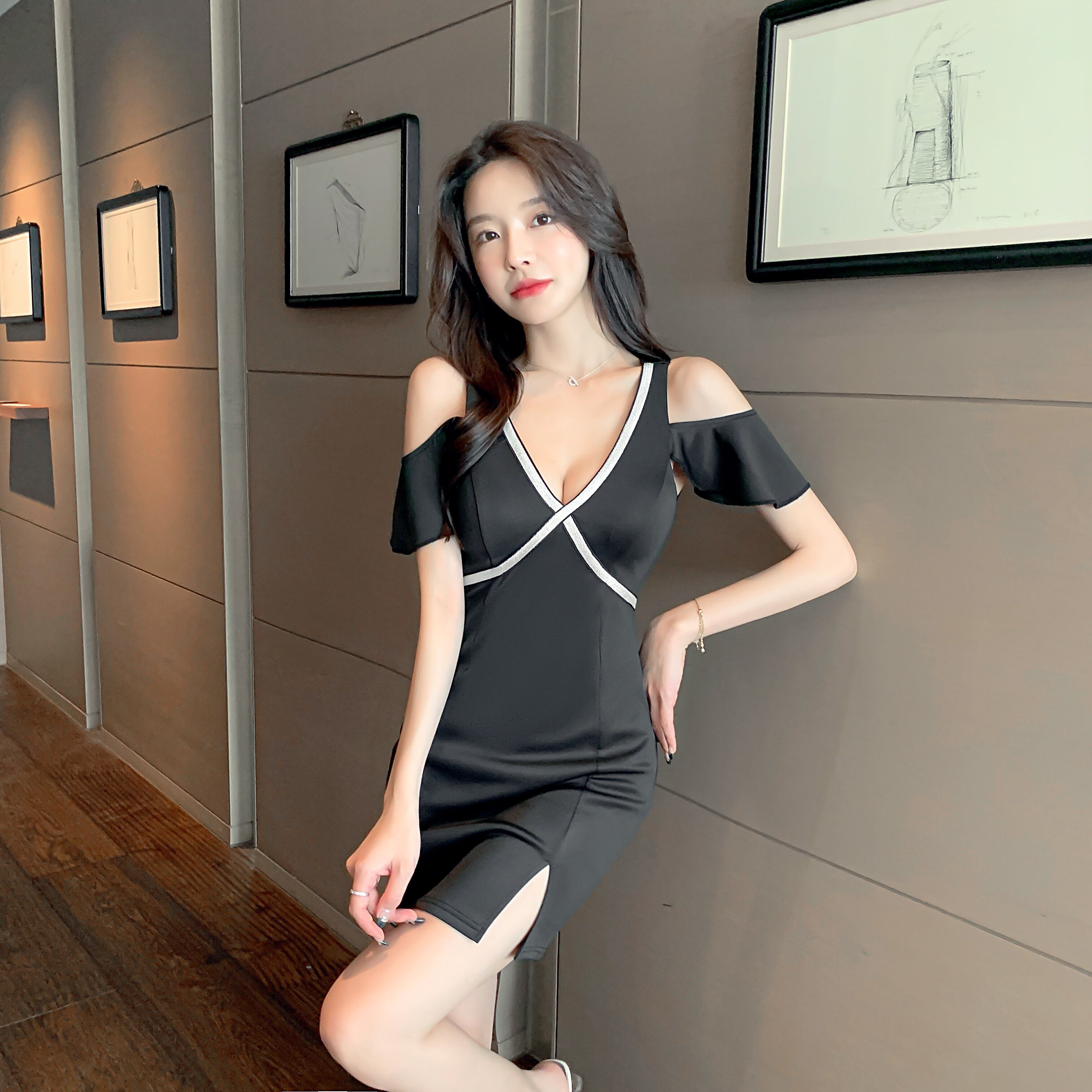 ナイトクラブの女性の作業服セクシーな作業服ローカットディープVネックストラップレスフライングスリーブサスペンダードレス micat50792318323