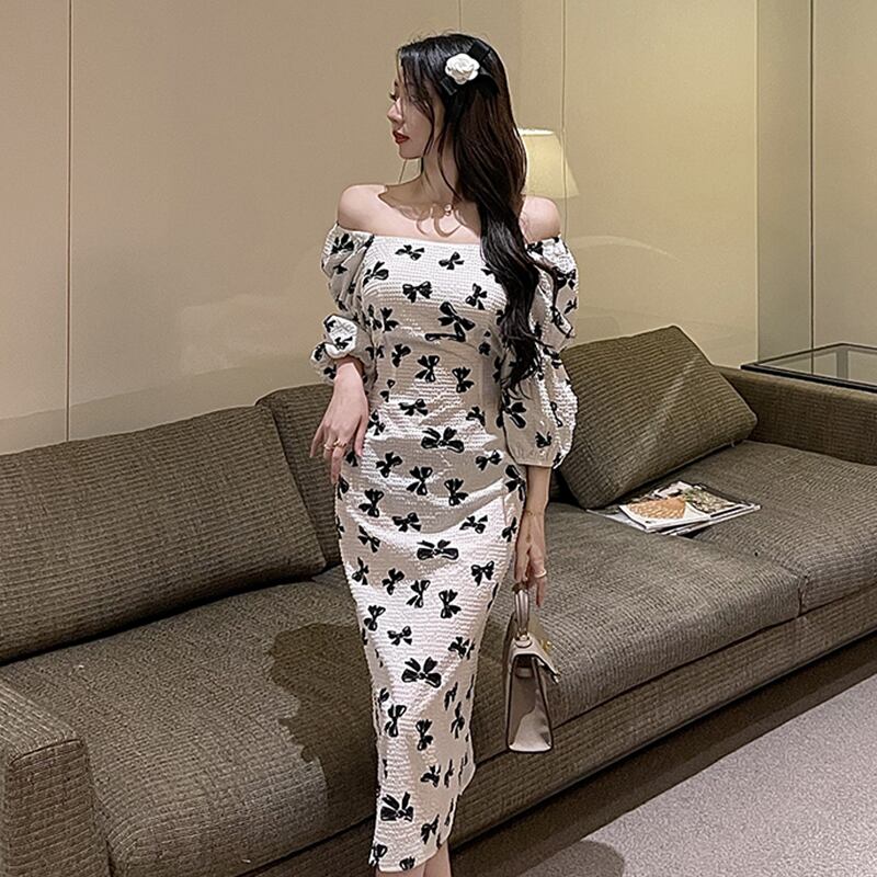 軽くて贅沢な小さなドレス高品質の毎日のフランスのレトロなパフスリーブ気質セクシーなワンショルダーミドル丈ドレス micat56038573358