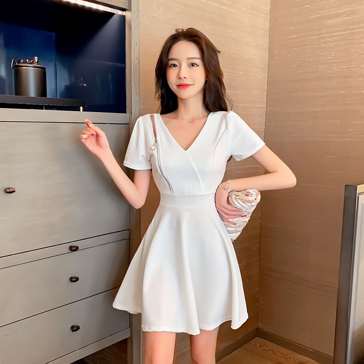 ナイトクラブ女子足湯技術者オーバーオール気質セクシーVネックウエストスリムAライン半袖ワンピース micat89068525355