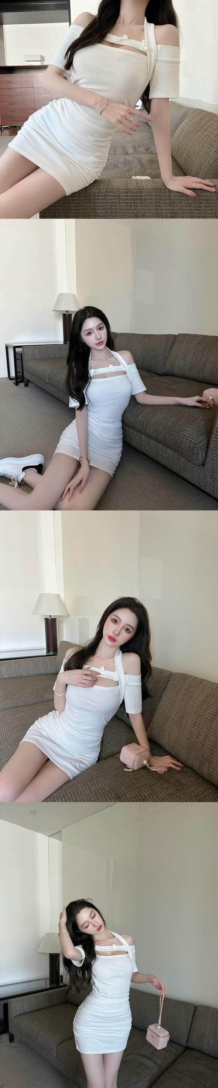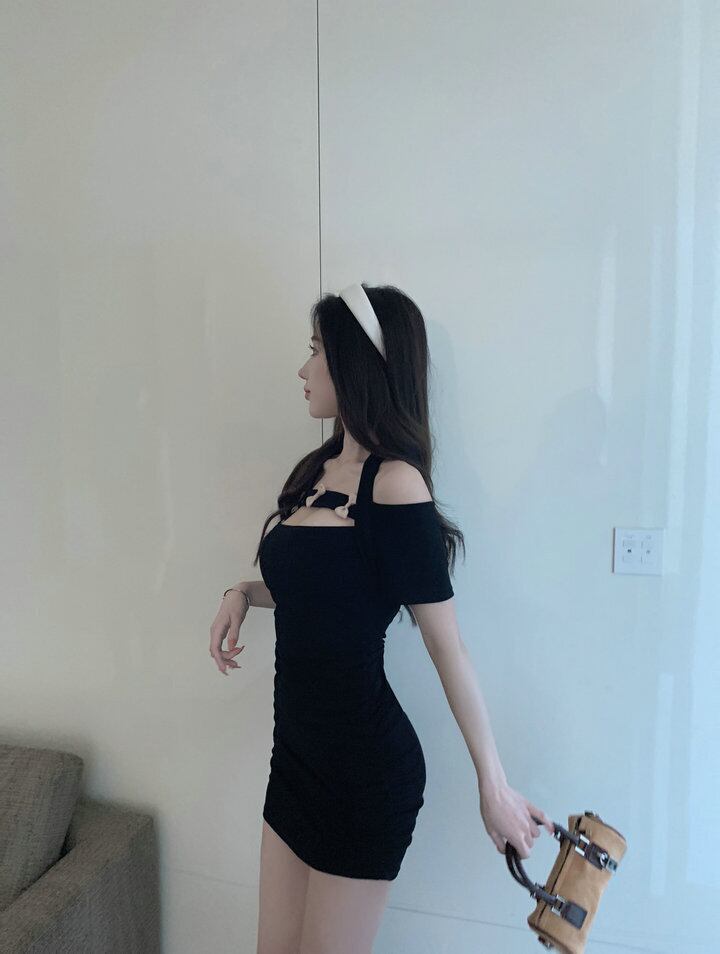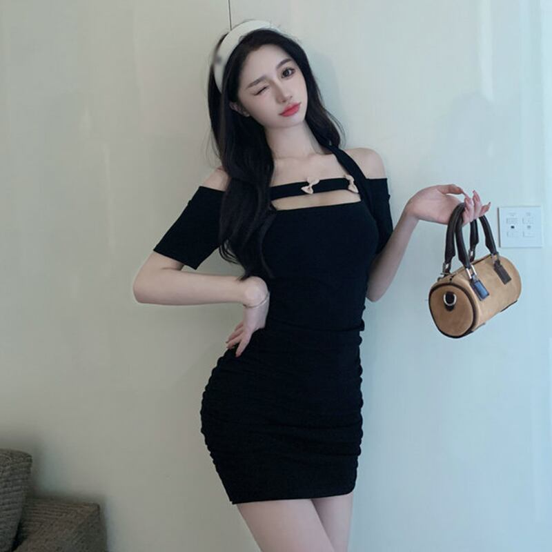 生放送服ポジェニック女性アンカー服ナイトショップセクシーワンショルダー半袖バッグヒップオフショルダーホルタードレス micat43802984963