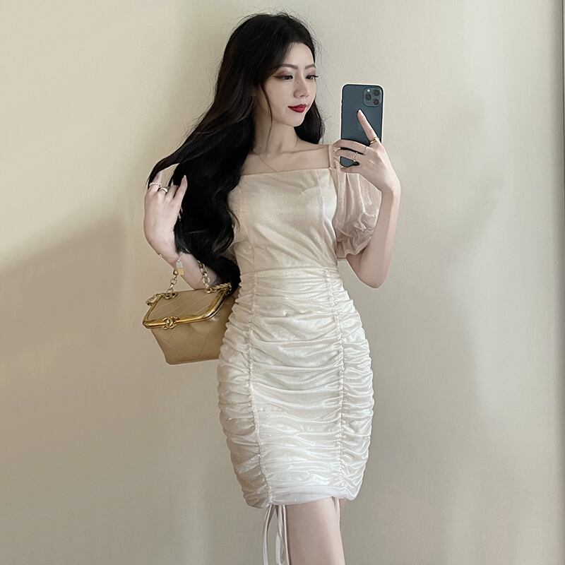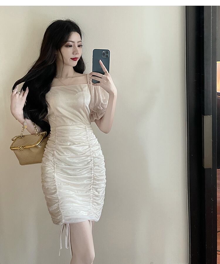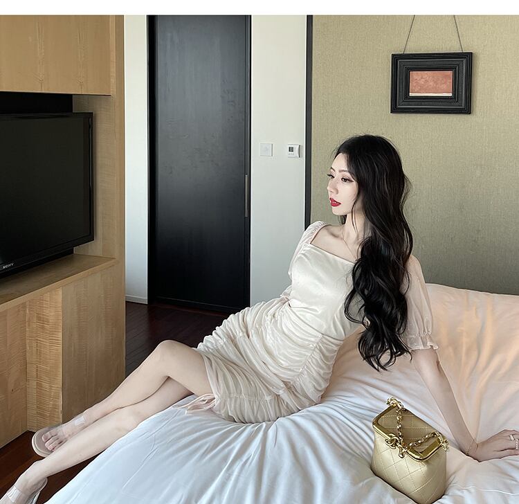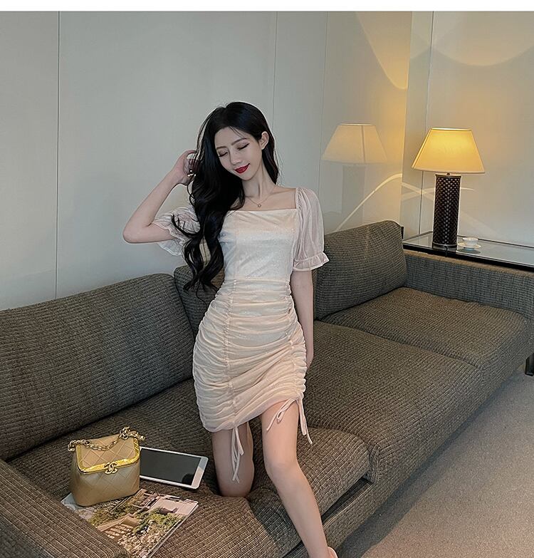 ライトラグジュアリースモールドレスハイエンドパーティーデイリーシャイニーシルク気質フレンチセクシースクエアネックショートパッケージヒップドレス micat9249267800