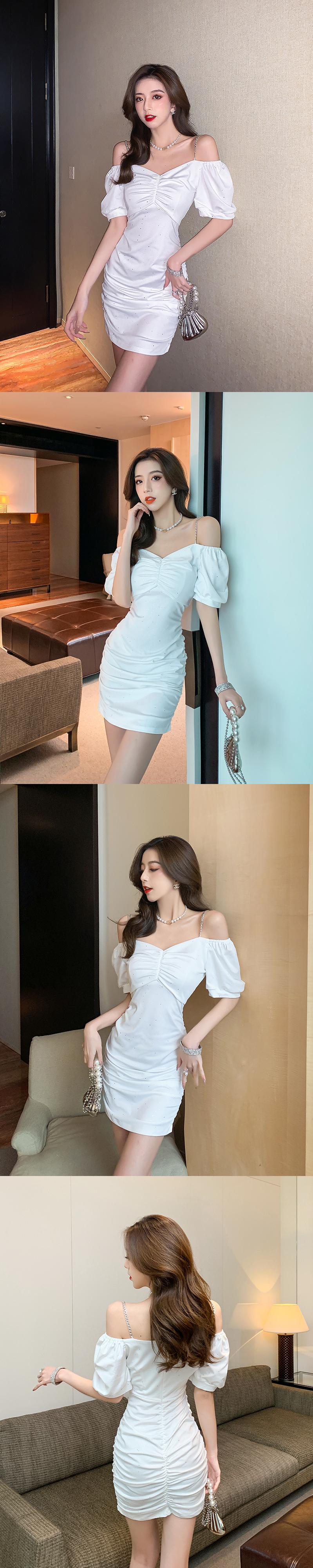 2022年人気の女性の新しい夏のセクシーなオフショルダースパークリングフレンチパフスリーブサスペンダードレス micat97868837167
