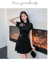 改良されたチャイナドレススーツ女性の若い気質黒のセクシーなレースのステッチドレス+ショーツツーピースセット micat18648359790