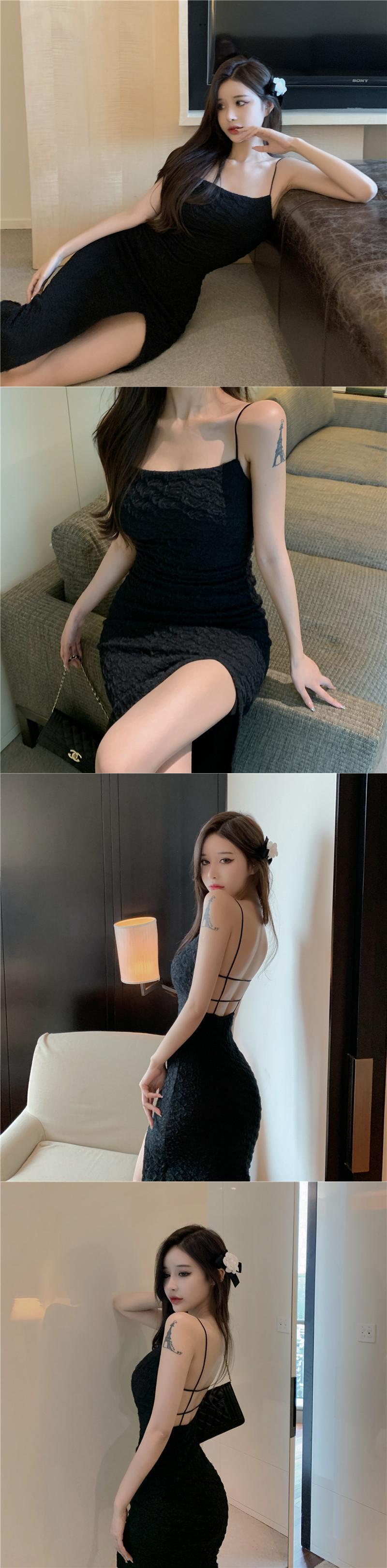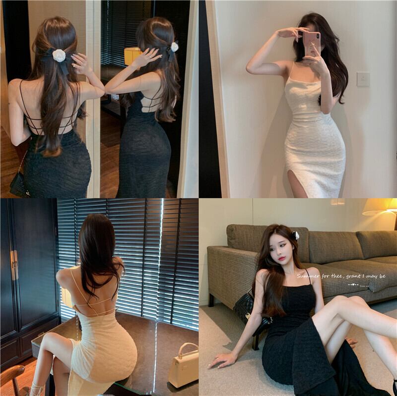 イブニングドレスロングスカート女性ハイエンド気質旅行休暇セクシーな背中の開いたハイスリットミドル丈サスペンダードレス micat18897923583