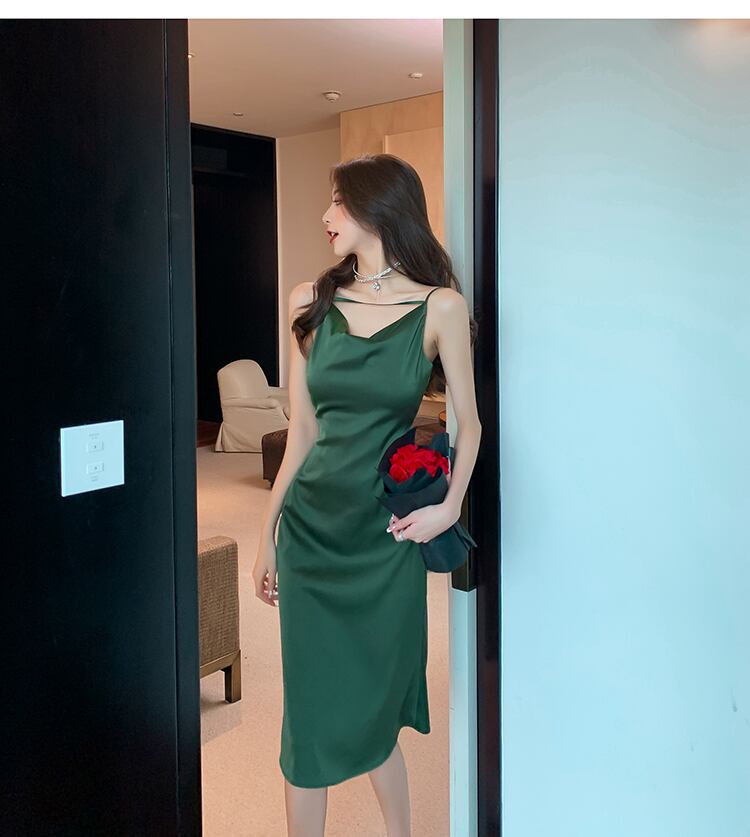 ナイトクラブドレスバックレス傾斜ショルダーストラップロングドレスナイトクラブ気質は薄くてセクシーなミドル丈のイブニングドレスの女性です micat38457954073