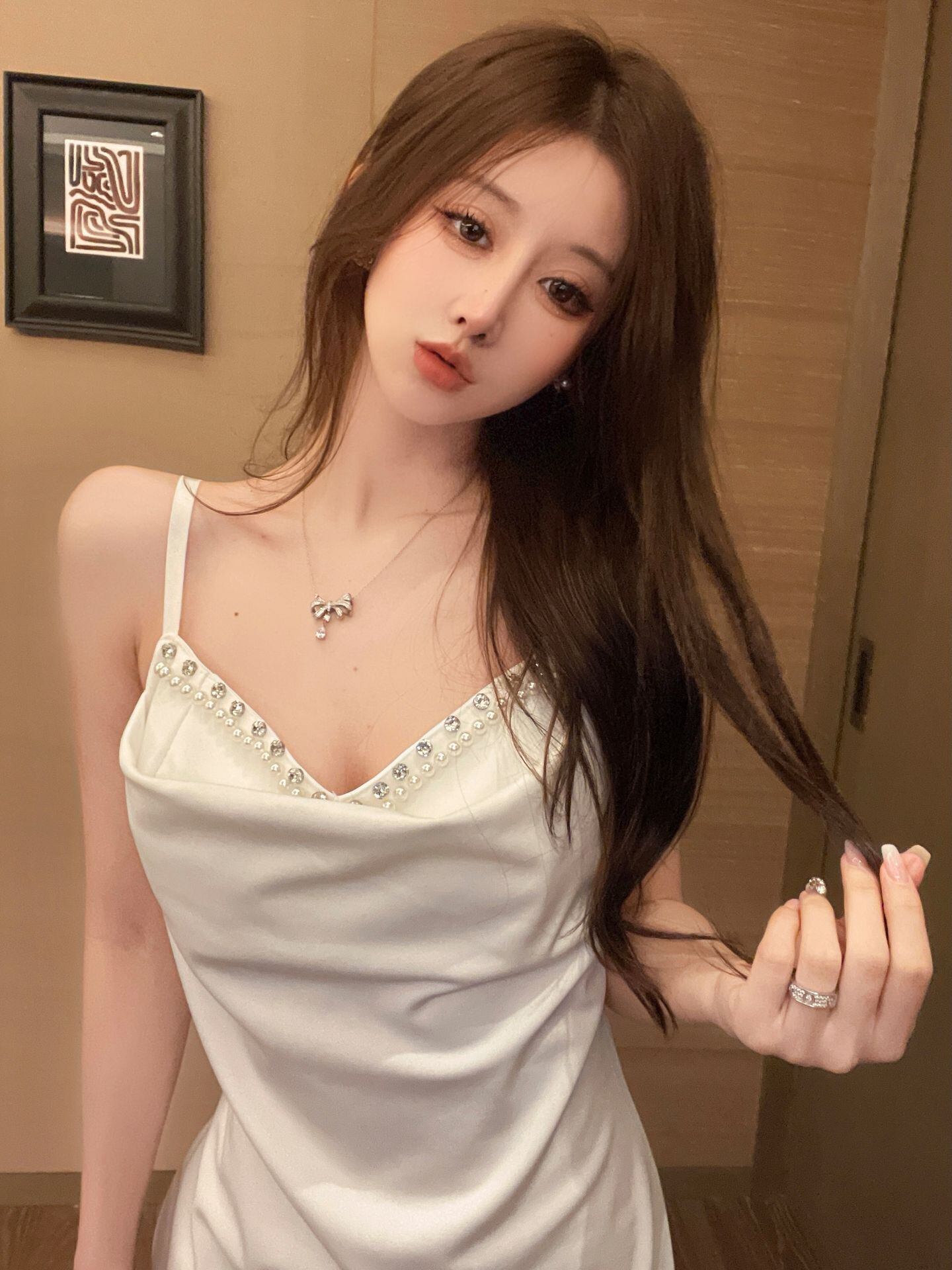 白い小さなドレスパーティーナイトクラブ女性のナイトクラブハイエンド気質ダイヤモンドをちりばめたセクシーなサスペンダードレス micat76267067307