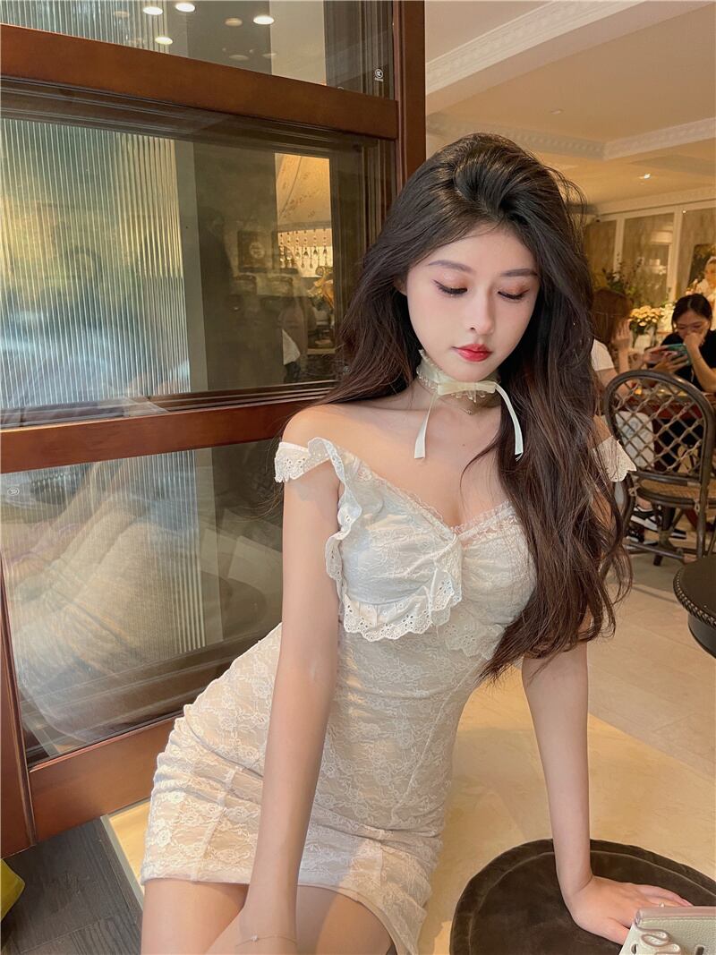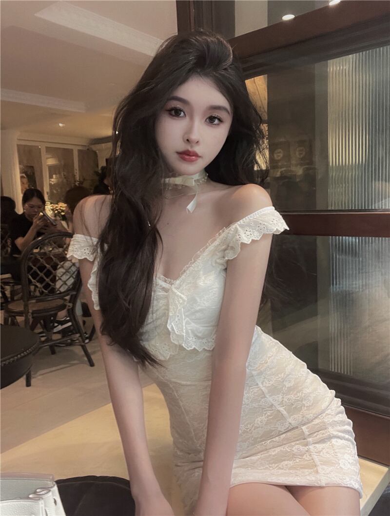 フランスの小さな白いドレスライブ放送アンカー服女性の純粋な欲望スタイルセクシーなVネックレースバッグヒップサスペンダードレス micat33069981490