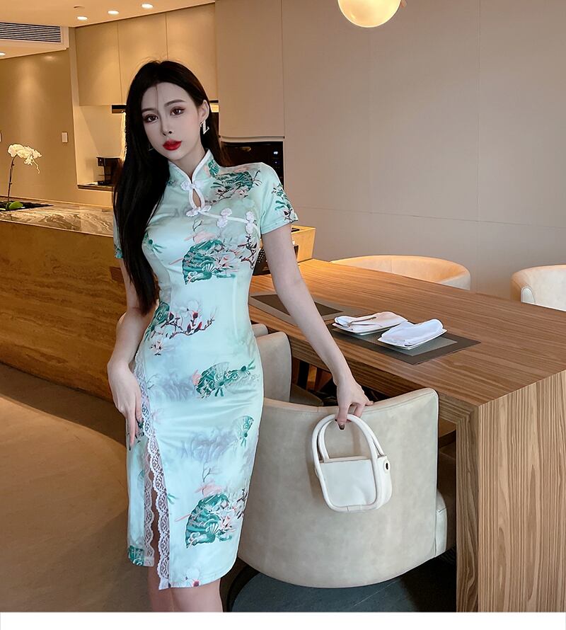 生放送服ポジェニック女性アンカー服若いレトロな中国風の印刷セクシーな改良されたチャイナドレス micat44138546697